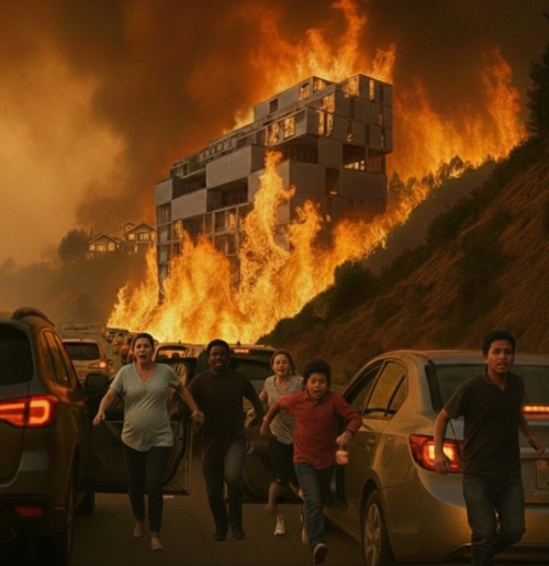 Developer Jordan Shalom is exploiting a loophole to force through a massive 62-unit, 9-story apartment project between Barham Blvd and Floyd Terrace, in an area designated by CAL FIRE as a “Very High Fire Hazard Severity Zone,” where such construction is prohibited.